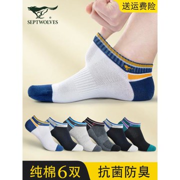 七匹狼純棉襪子男士運動防臭吸汗短襪春夏船襪薄款透氣男生不掉跟