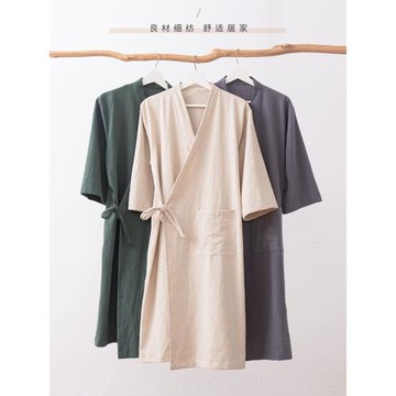 浴袍春夏棉麻睡袍亞麻浴衣純棉男女士日系和服長袖桑拿睡衣汗蒸服