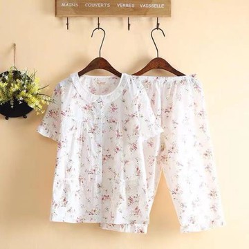日系水洗布睡衣女夏短袖七分褲卡通可愛梭織人造棉布睡衣家居服套