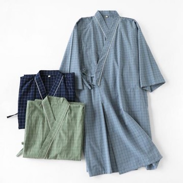 格子日式和服睡袍男女春夏季純棉棉布薄款寬松汗蒸情侶浴袍家居服