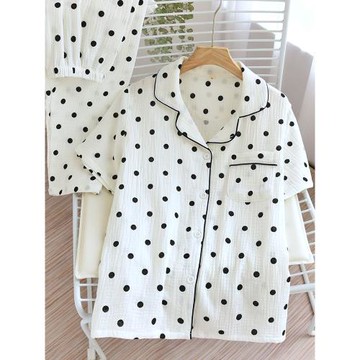 波點雙層純棉紗布睡衣女款夏天短袖長褲家居服套裝夏季薄款空調服