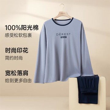 頂呱呱長袖睡衣男純棉家居服套裝春秋薄棉裝套頭運動起居服可外穿