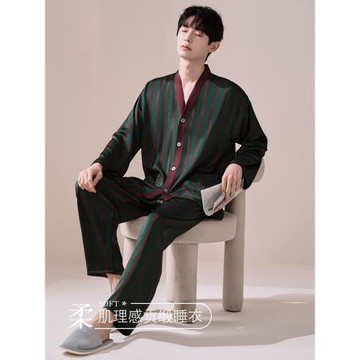 樂姿夢【超柔軟】冰絲睡衣男士春秋季新款改善睡眠家居服兩件套裝