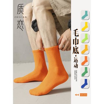 襪子男士純棉加厚毛巾底中筒襪運動籃球吸汗防臭黑白橙色潮男短襪