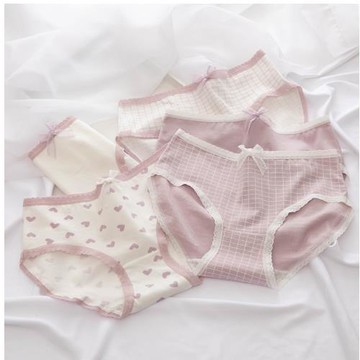堅果媽咪可愛內褲女香芋紫網格純棉襠部日系愛心少女學生三角短褲