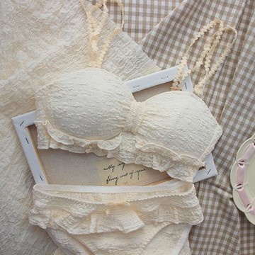 法式少女甜美無鋼圈小胸內衣性感荷葉邊蕾絲日系學生文胸罩套裝