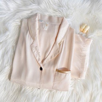 高級感短袖冰絲睡衣女春秋天純色長袖長褲女士網紅風家居服夏季款