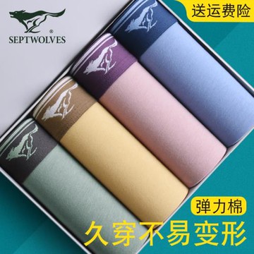 七匹狼男士內褲男生純棉四角短褲新款褲衩青少年高檔透氣平角褲頭