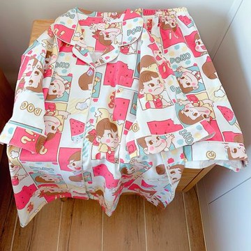漫畫不二家睡衣女夏季純棉短袖短褲長褲可愛卡通牛奶妹家居服套裝