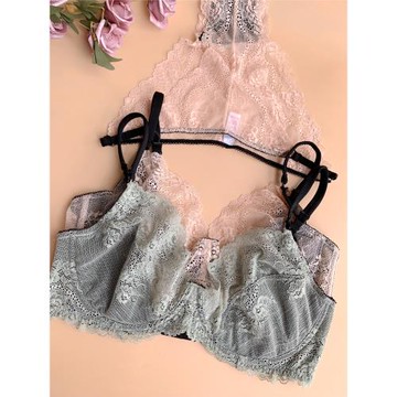 70-120BCDE外貿法國超薄蕾絲網紗大罩杯大碼文胸罩內衣有鋼圈