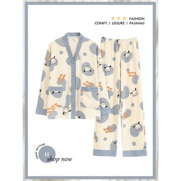 『小白鴨』日系の卡通可愛藍色純棉睡衣女款春秋季長袖家居服套裝