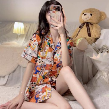 ins日系夏款純棉睡衣女生卡通小新薄款短袖卡通情侶家居服男套裝