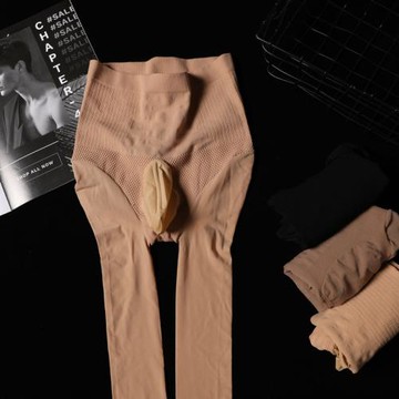 新款男士春夏低腰連褲襪超薄隱形菠蘿襪防勾絲黑肉色光腿神器絲襪