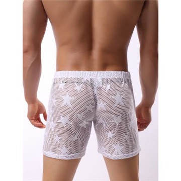 男士家居性感短褲星星網孔透氣鏤空大平角褲起居睡褲休閑家居中褲