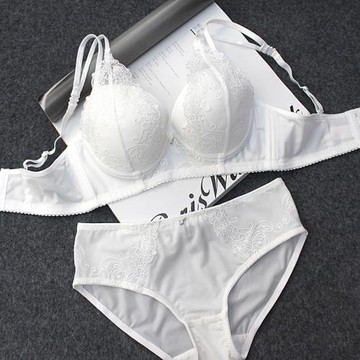 點我下載歐美奢華刺繡 白色集中聚攏女士內衣文胸套裝性感深V蕾絲內衣春夏