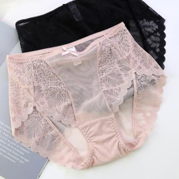 透明全蕾絲女士內褲 黑色性感中腰三角褲鏤空包臀大碼青年 純棉襠