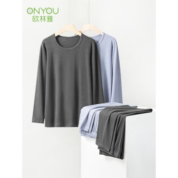 歐林雅竹漿纖維保暖內衣套裝男女秋冬季中厚棉打底圓領秋衣秋褲