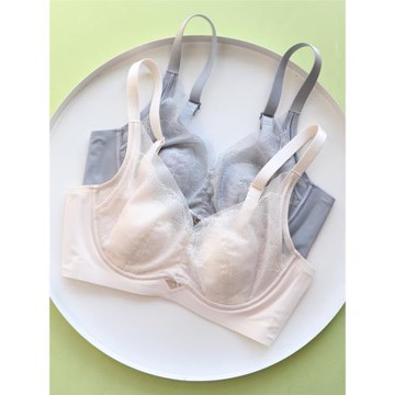 薄款純色蕾絲花邊內衣大胸顯小不空杯防凸點性感文胸防下垂胸罩