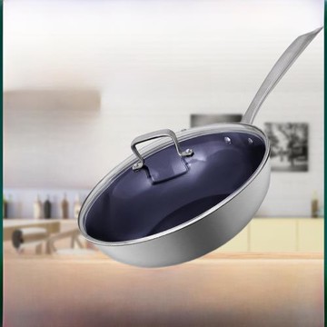 點我下載無涂層純鈦炒鍋藍鉆不易粘家用少油煙炒菜鍋電磁爐煤氣灶