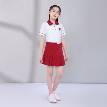 T256兒童高爾夫衣服夏套裝女童青少年運動上衣短袖POLO衫百褶短裙