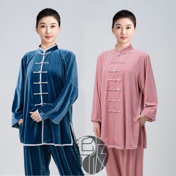 太極服女新款2023高端太極拳練功服男士秋冬季加厚金絲絨保暖服裝