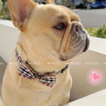 法斗項圈皮制英倫格子蝴蝶可調節寵物項圈中小型犬柴犬寫真拍照