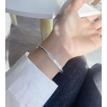 銀手鐲女9999純銀年輕款手飾小眾實心光面素圈銀鐲子生日禮物女生