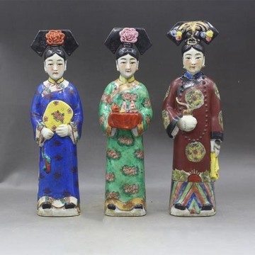 景德鎮粉彩明清陶瓷侍女古玩古董家居中式擺件