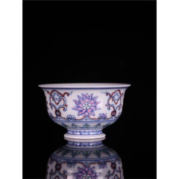 精品青花斗彩手繪纏枝蓮茶杯茶具景德鎮古玩古董陶瓷器手工品茗杯