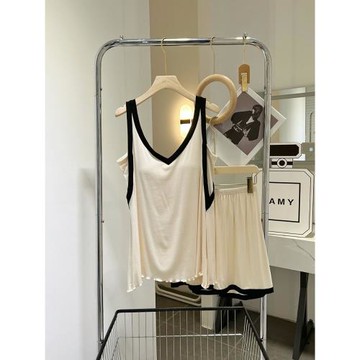 【血虧出清】時尚無袖針織背心拼接撞色百搭修身淑女春夏s30216e