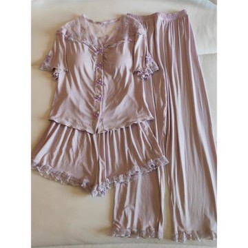 帶胸墊睡衣女夏季莫代爾棉短袖三兩件套薄款性感蕾絲高級感家居服