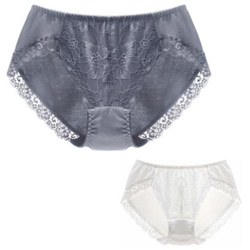 W華家日D蕾絲典雅鐵灰純白潔貴婦莫代爾棉包臀淑女中腰三角內褲