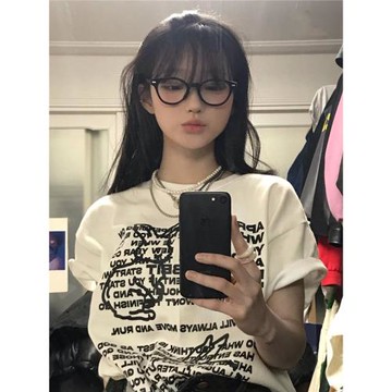 純棉美式印花寬鬆短袖上衣