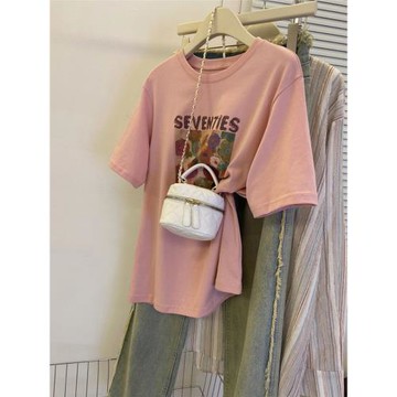 歐美復古短袖t恤女2022年新款中長款寬松韓版原宿風半袖體恤上衣