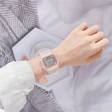 方形電子手表女新款 簡約氣質初高中ins風韓版透明防水夜光計時女