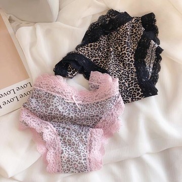 ins風性感豹紋蕾絲邊無痕舒適冰絲低腰三角褲少女內褲包臀底褲