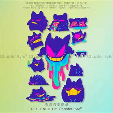 精靈寶可夢耿鬼貼紙汽車摩托電動車個性創意可愛裝飾貼刮痕遮蓋貼