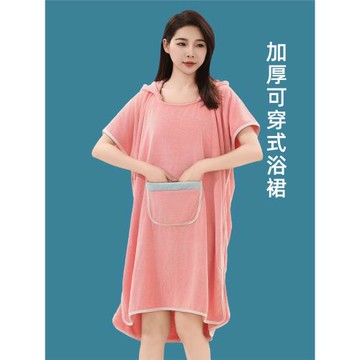 浴裙女可穿式珊瑚絨可裹巾家用加厚吸水洗澡斗篷浴袍式浴巾不掉毛