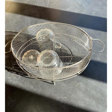日本職人手作京都鳥井金網手工編織橢圓形不銹鋼瀝水籃帶底座