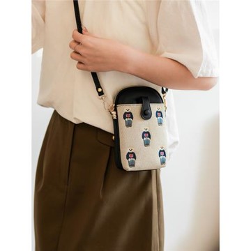 2025新款原創小眾手機包帆布斜挎包卡通迷你小包包休閑小熊單肩包