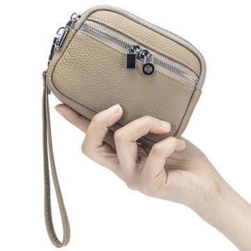 新款真皮多功能女士迷你小包零錢包大容量雙拉鏈小錢包手拎收納包