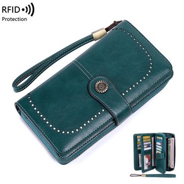 RFID防磁錢包長款拉鏈女士復古百搭時尚歐美新款大容量手拿包卡包