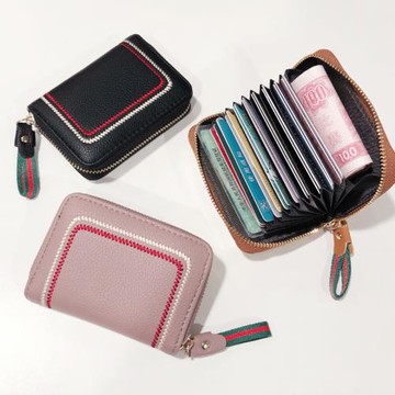 新款真皮風琴卡包多卡位RFID零錢包拉鏈卡套男女硬幣包大容量卡包