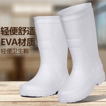 EVA泡沫雨靴夏季男女高筒防水鞋男女水靴廚房防滑耐油白色食品靴