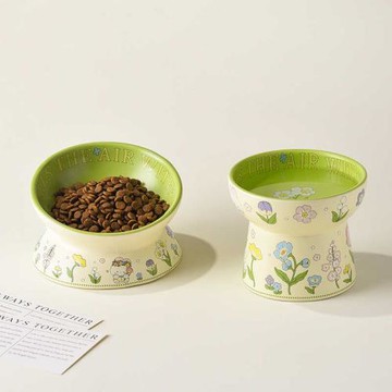 花邊貓碗可愛綠兔子水碗套裝貓罐頭食盆陶瓷斜口狗糧碗貓咪防打翻