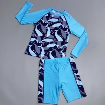 Amber 兒童長袖平角褲分體泳衣男童套裝速干防曬沖浪浮潛服中大童