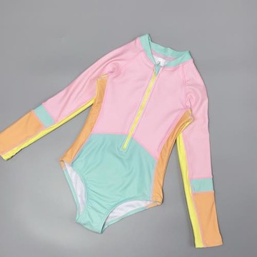 Amber出口英單兒童三角連體泳衣女童防曬速干長袖拉鏈沖浪中大童