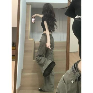 美式工裝褲女款夏季薄款2025新款高腰日系速干綠色小個子闊腿褲子