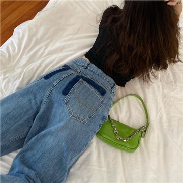 復古秋季大碼胖mm牛仔長褲女學生韓版chic寬松顯瘦百搭闊腿直筒褲