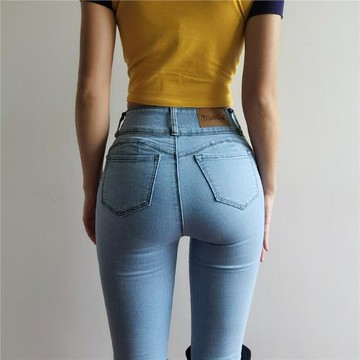 點我下載翹臀立顯!蜜桃臀牛仔褲顯瘦彈力高腰三排扣緊身包臀鉛筆褲小腳褲
